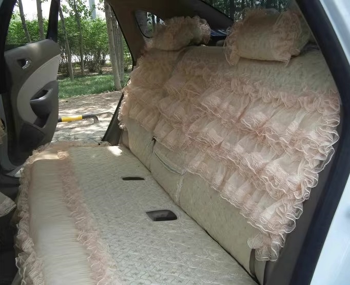 | Tailored Girly Bud Silk Personalized Floral Girls Lace Cotton Custom Automobile Car Seat Cover Sets - Black Bowknot |