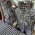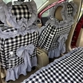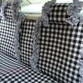 Tailored Jacquard Girly Bud Silk Seat Cushion Grid Lace Countryside Custom Automobile Car Seat Cover Sets - Black White