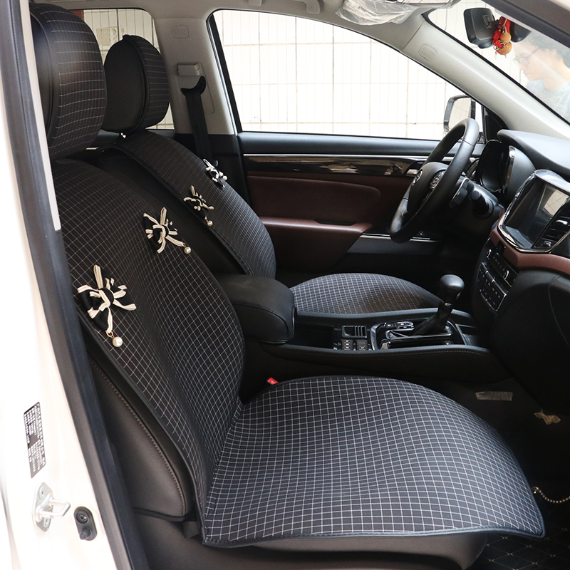 CODE:0006734418012019 NAME:Classic Plaid Bowknot Car Seat Covers Women Girls Cotton Automobile Protection Cushion 10pcs Sets - Black
