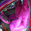 | Cute Women Leather Bubble Cushion Jp Dad Winter General Car Seat Covers 5pcs Set - Rose Pink |