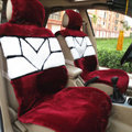 Short Plush Auto Cushion Universal Car Seat Covers For Women 5pcs Sets - Wine Red