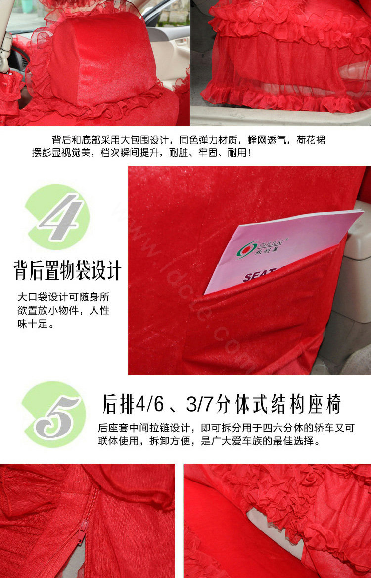CODE:0002720017012014 NAME:OULILAI Lace Flower Universal Automobile Car Seat Cover Bright silk 18pcs - Red