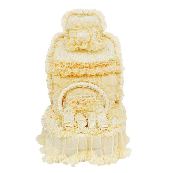 CODE:0002720217012014 NAME:OULILAI Lace Flower Universal Automobile Car Seat Cover Bright silk 18pcs - Beige