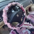 NAME:Luxury Jacquard Girly Bud Silk Seat Cushion Floral Safest Lace Countryside Custom Automobile Car Seat Cover Sets - Pink