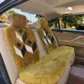 | Luxury Rhombus Pure Wool Car Seat Cushion Universal Sheepskin Fur Pads 5pcs Sets - Beige |