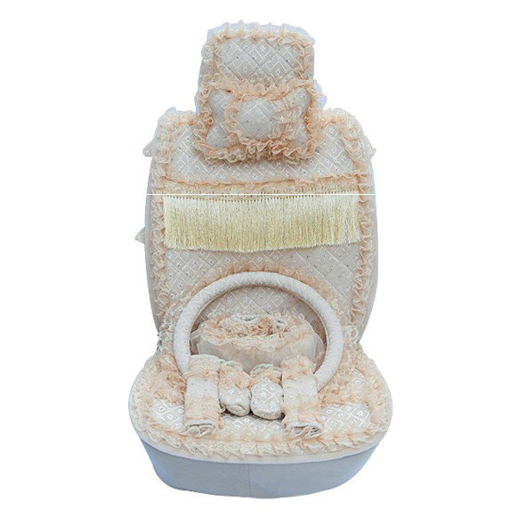CODE:0002718908012014 NAME:OULILAI Lace Tassel Universal Automobile Car Seat Cover Cushion Plush 15pcs - Beige