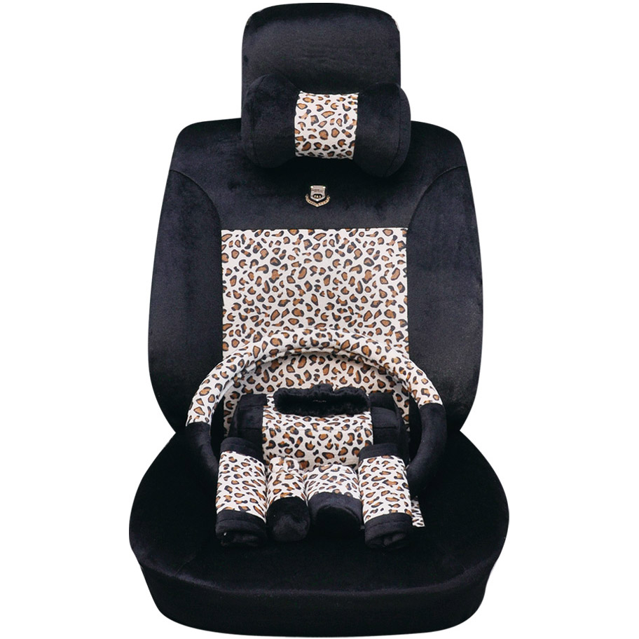 CODE:0001632017102012 NAME:OULILAI Leopard Universal Auto Car Seat Cover Set Short velvet 19pcs - Beige