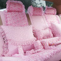 Package: 2 x front seat backrest, 2 x Front seat backrest covers, 4 x Headrest covers 1 x Back seat backrest, 1 x Back seat backrest cover, 2 x pillow 2 x Clasp kit, 1 x steering wheel set, 1 x Handbrake sleeve 1 x stalls set, 1 x Tissue Box set, 1 x Rearview Mirror Cover Shipping Weight: 4.5 kg