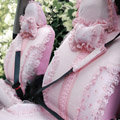 * High quality PU breathable soft leather and Chinlon gauze * Delicate little roses embroidered edges, feel smooth and delicate * Excellent breathability, anti-static, low-carbon environmental tasteless * High tensile strength, good acid and alkali resistance * Clipping fine, fine workmanship, suitable for all small cars * Full sets of car 19 Pieces, suitable for any season