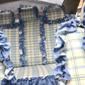 NAME:Universal Cotton Plaid flower Print lace Auto Car Seat Cover 19pcs Sets - Blue