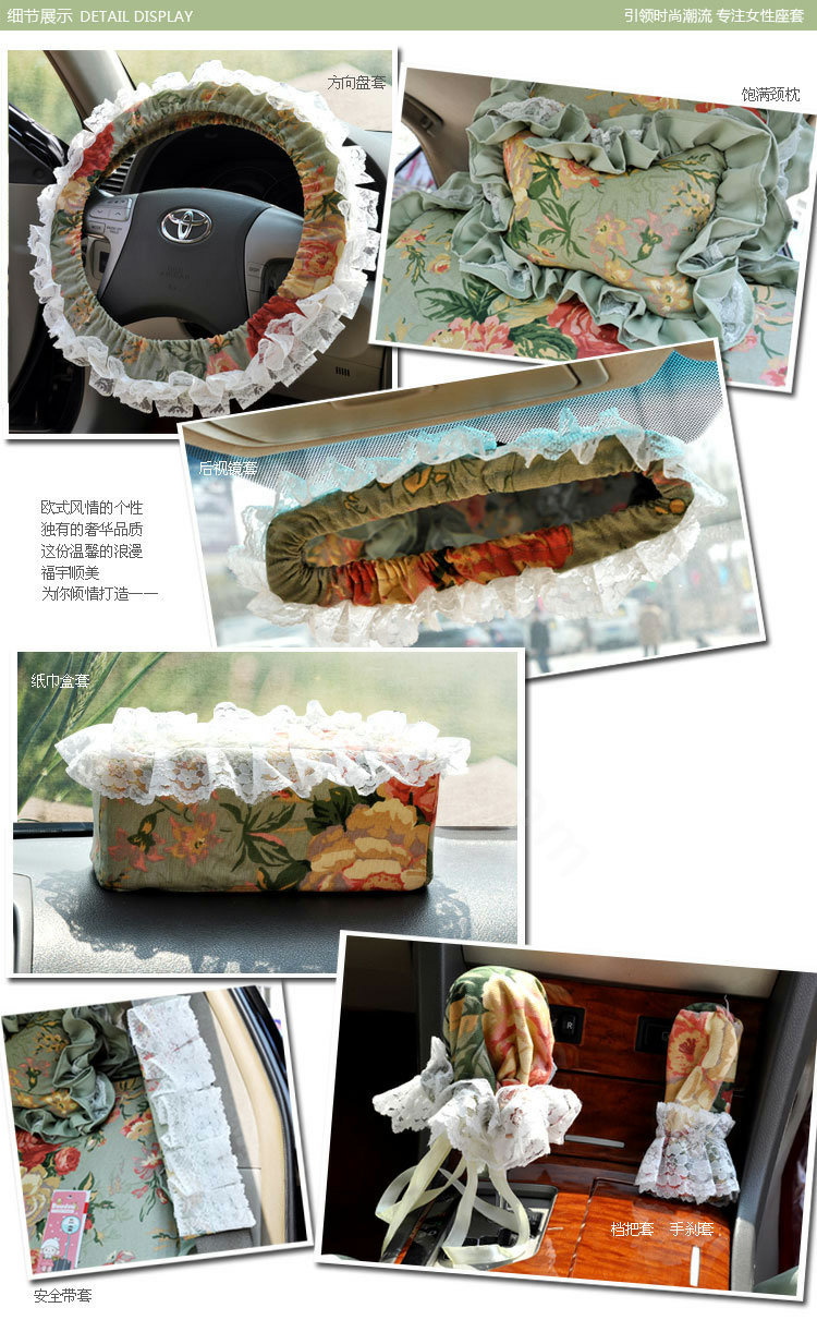 NAME:Universal Woman 100% Cotton flower Print Lace Auto Car Seat Cover 19pcs Sets - Beige