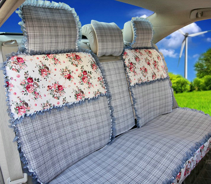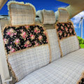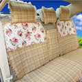 | Universal Flax Cotton Flower Print Lace Car Seat Cover Auto Cushion 10pcs Sets - Beige |