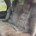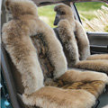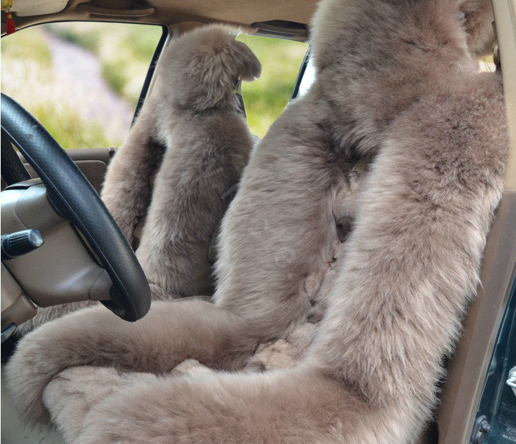 Description: 1.) A sheepskin car seat cover is an aesthetic and protective automobile accessory fabricated from natural sheepskin pelts. 2.) Soft and plush, sheepskin car seat cover are said to relieve pressure points in the neck, back, and legs while driving, and also protect automobile seats from wear and tear. The woollen fleece is flame and static resistant, helping to prevent a build up of static electricity that synthetic covers often produce. 3.) Sheepskin is also a natural insulator, and draws perspiration away from the driver and passengers' skins and into the fibers. There, it traps between 30 and 36 percent of its own weight in moisture. 4.) Typically, the car seat covers are fashioned from sheepskin pelts that may be shorn for a more uniform appearance. Sheepskin seat covers are usually availably with several different lengths of wool to choose from. The sheepskin pelts are machine-stitched together on the underside to create a smooth sheath that covers the automobile seat and fastens beneath it with sturdy elastic straps.