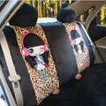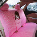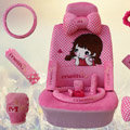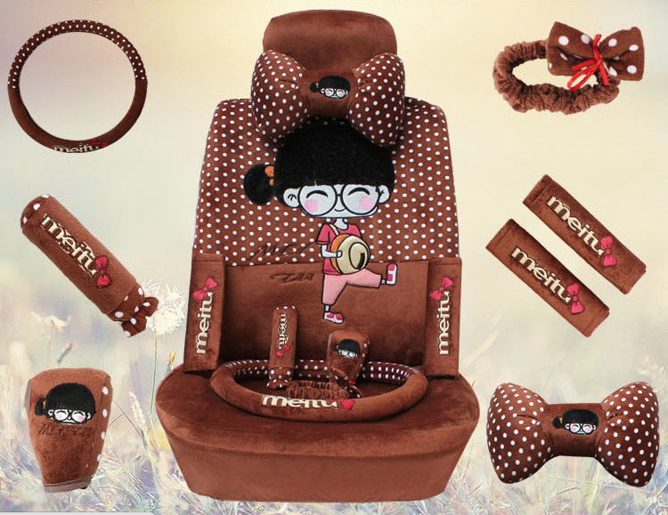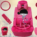 | Universal Winter Velvet Girls Polka Dots print Auto Seat Cover 18pcs Sets - Coffee |