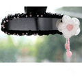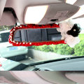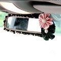 Romantic Powder Crystal Flower Genuine Sheepskin Car Rearview Mirror Elastic Covers - Black
