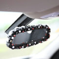 Bling Women Leather Elegant Car Rearview Mirror Elastic Covers Motorcar Interior Decorate - Black