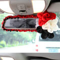 Elegant Crystal Beads Rose Genuine Sheepskin Car Rearview Mirror Elastic Covers - Black