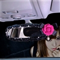 Bling Women Leather Camellia Car Rearview Mirror Elastic Covers Motorcar Interior Decorate - Black