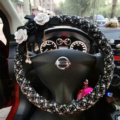 Top Quality Pearl Tassel Flower Linen Vehicle Steering Wheel Covers 15 inch 38CM - Black White