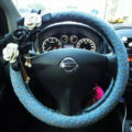 Top Quality Pearl Tassel Flower Linen Vehicle Steering Wheel Covers 15 inch 38CM - Blue