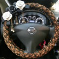 Top Quality Pearl Tassel Flower Linen Vehicle Steering Wheel Covers 15 inch 38CM - Black Pink