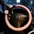 Top Quality Pearl Tassel Flower Linen Vehicle Steering Wheel Covers 15 inch 38CM - Pink