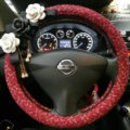 Top Quality Pearl Tassel Flower Linen Vehicle Steering Wheel Covers 15 inch 38CM - Red