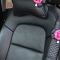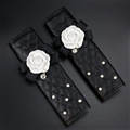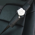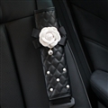 2pcs Car Safety Seat Belt Covers Women Creative Beautiful Camellia Leather Shoulder Pads - Black