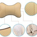 2pcs Genuine Leather Car Seat Pillow Breathable Soft Neck Cushion Auto Styling Accessories - Beige This item will be shipped from China