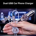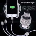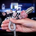 3 in 1 Universal Crystal Diamond USB Data Cable Mobile Phone Car Charge Line in Car - White This item will be shipped from China
