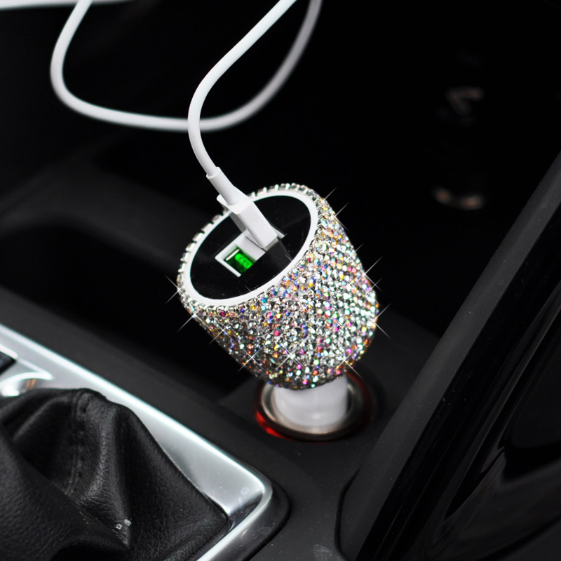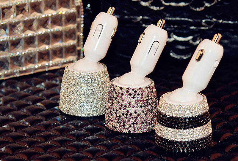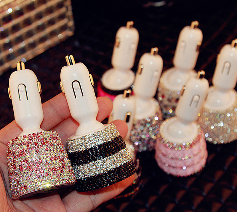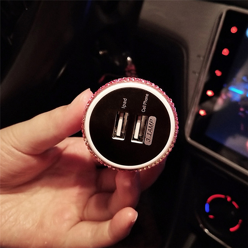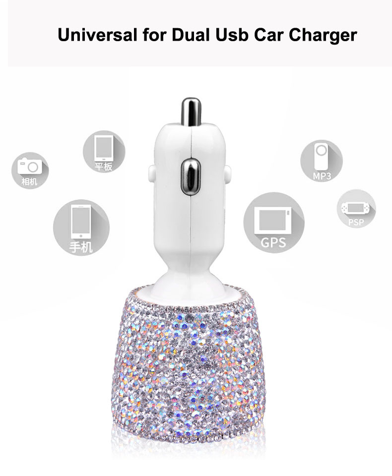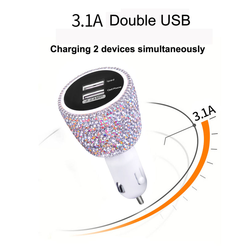 * high quality rhinestones * 3.1A Double USB * Charging 2 devices simultaneously * Universal for Dual Usb Car Charger * Quick Charging * The Charger can be rotated