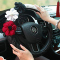 Auto Car Steering Wheel Cover Black Flower Nylon shioze Diameter 15 inch 38CM - Beige This item will be shipped from China