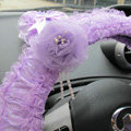 | Auto Car Steering Wheel Cover Flower Lace Polyester Diameter 15 inch 38CM - Pink |