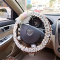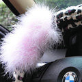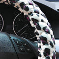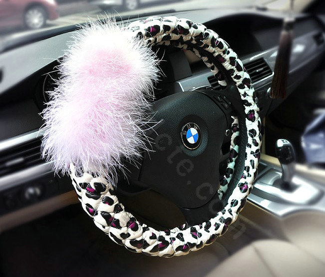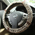 | Auto Car Steering Wheel Cover Fur Ball Leopard Faux Leather Diameter 15 inch 38CM - Pink |