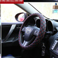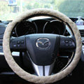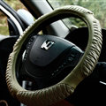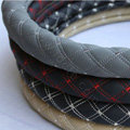 | Auto Car Steering Wheel Cover Grid pattern PU leather Diameter 15 inch 38CM - Beige |
