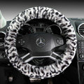| Auto Car Steering Wheel Cover Leopard Plush Diameter 15 inch 38CM - Black |