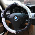 CODE:0002517007102013 NAME:Auto Car Steering Wheel Cover Polyester Diameter 15 inch 38CM - Black White