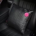 Beautiful Camellia Women Rhinestone Car Seat Lumbar Pillows PU Leather Square Cushions 1pcs - Black This item will be shipped from China