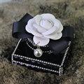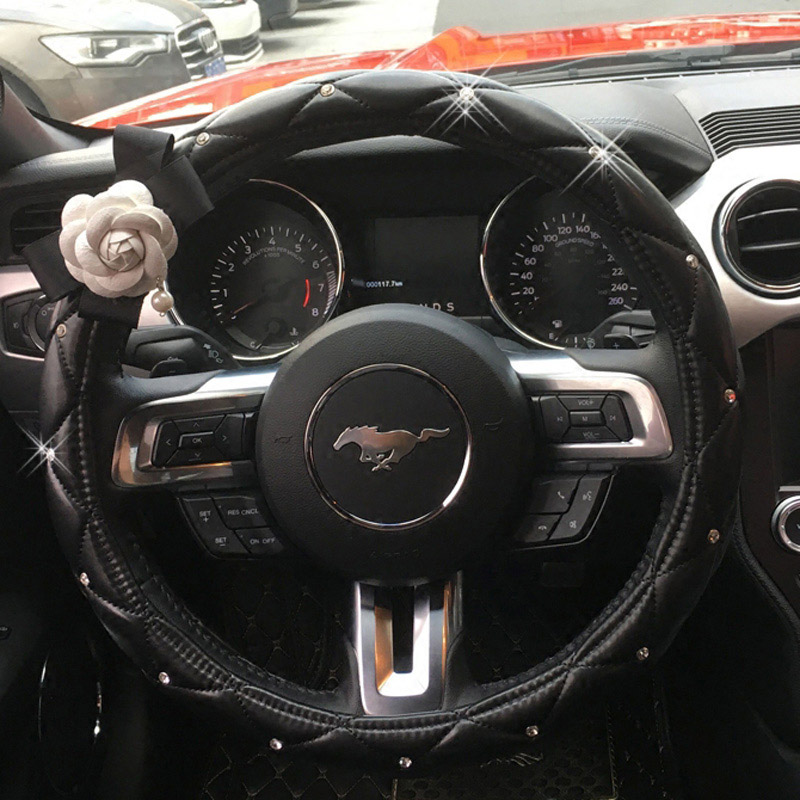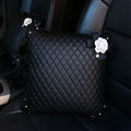 Beautiful Camellia Women Rhinestone Car Seat Lumbar Pillows PU Leather Square Cushions 1pcs - Black This item will be shipped from China