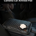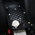 Black Camellia Women Rhinestone Car Armrest Pad PU Leather Armrest Cushions 1pcs - Black (CODE: 0006769818022019)
