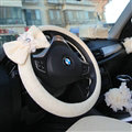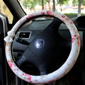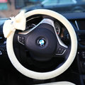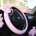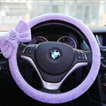 CODE:0006134820112015 NAME:Bowknot Car Steering Wheel Cover Bud Silk Fiber Cloth 15 Inch 38CM - Pink