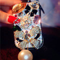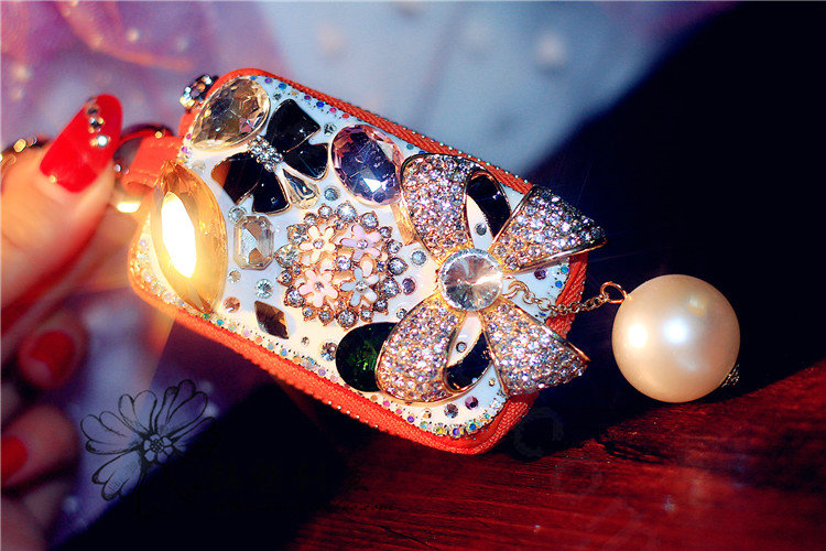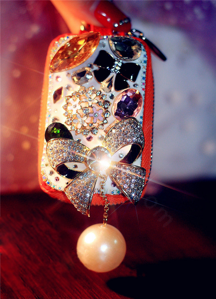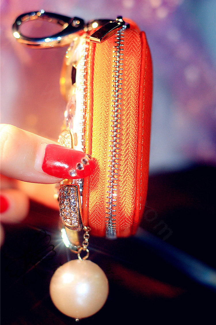 Bowknot pearl Crystal Auto Key Bag Pocket Genuine Leather Car Key Case Key Chain - Orange (CODE: 0002711724112013)