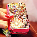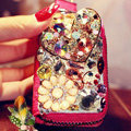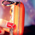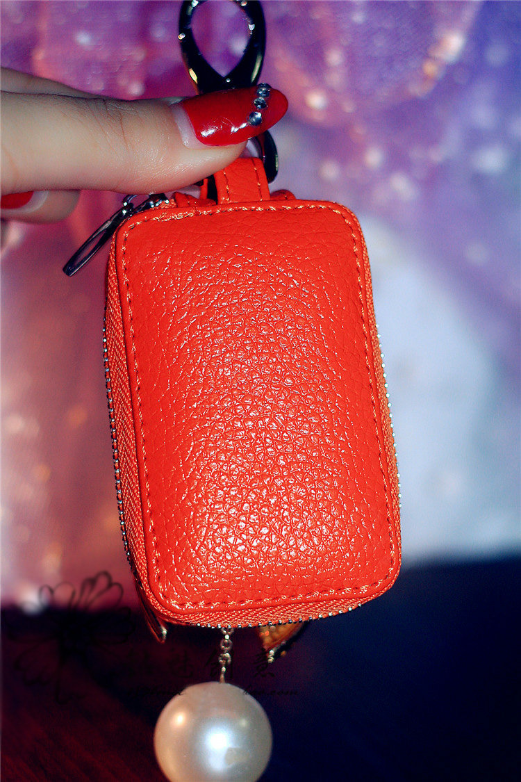 Bowknot pearl Crystal Auto Key Bag Pocket Genuine Leather Car Key Case Key Chain - Orange