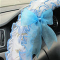 Bud Silk Bowknot Lace Car Steering Wheel Cover Fiber Cloth 15 Inch 38CM - Red This item will be shipped from China