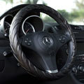 Calssic Man Genuine Lamb Leather Grip Auto Steering Wheel Covers 15 inch 38CM - Black