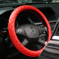 Description: 1.) This luxury car steering wheel cover is selected top quality genuine sheepskin fabric, with elastic smooth glossy. 2.) Car steering wheel cover inner ring using natural rubber, green, no unpleasant smell, non-Slip. 3.) Elegant calssic diamond lattice protruding lines design, antiskid, easy to grasp. 4.) Generous and fashion designed, so that your car is absolutely unique, it shows your taste and personality. 5.) Easy to clean and installation, no deformation, high wear resistance.