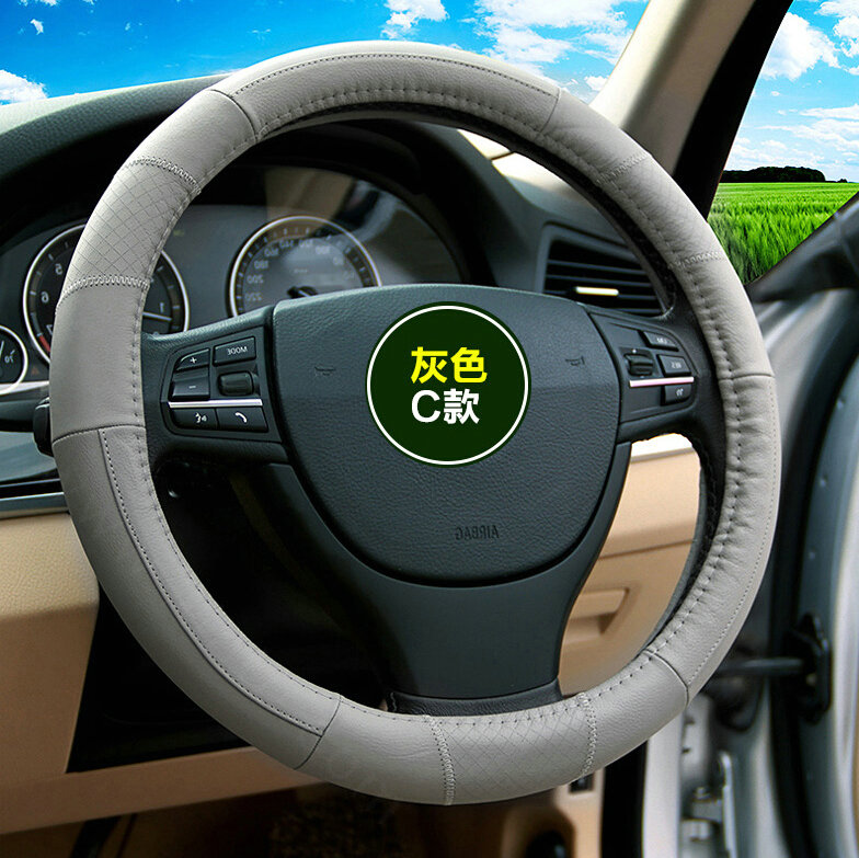 Classic Auto Steering Wheels Covers Cowhide Leather 15 Inch 38CM - Beige This item will be shipped from China
