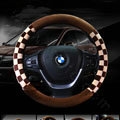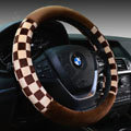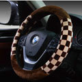 Classic Plaid Winter Plush Car Steering Wheel Covers 15 inch 38CM - Black White This item will be shipped from China