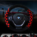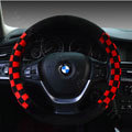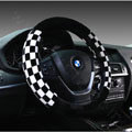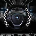 | Classic Plaid Winter Plush Car Steering Wheel Covers 15 inch 38CM - Black White |