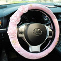 Color Camellia Car Steering Wheel Covers Velvet 15 Inch 38CM - Black
